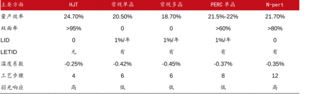 表:HJT電池優(yōu)勢