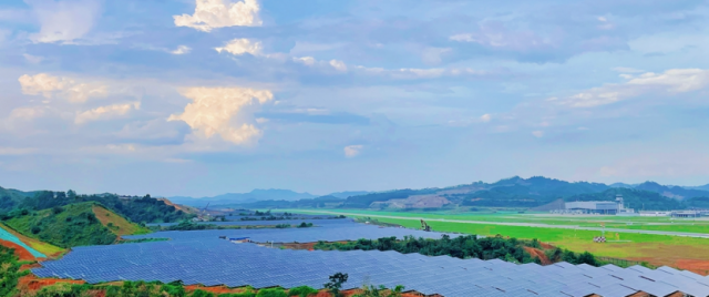 梧州西江機(jī)場(chǎng)光伏發(fā)電項(xiàng)目位于廣西梧州西江機(jī)場(chǎng)跑道旁,占地面積1000余畝,裝機(jī)總量為50兆瓦,為目前國(guó)內(nèi)最大的機(jī)場(chǎng)集中式光伏電站。西江機(jī)場(chǎng)光伏項(xiàng)目于今年2月開工建設(shè),7月31日完成全容量并網(wǎng)發(fā)電。項(xiàng)目建成后,年均發(fā)電量可達(dá)5558萬(wàn)千瓦時(shí),每年可節(jié)約標(biāo)煤約1.7萬(wàn)噸,減排二氧化碳約4.8萬(wàn)噸。項(xiàng)目方還會(huì)向當(dāng)?shù)厝罕娭Ц锻恋亓鬓D(zhuǎn)租金,后期的運(yùn)營(yíng)和發(fā)展,也將帶動(dòng)地方群眾致富,預(yù)計(jì)每年可為地方增加稅收100余萬(wàn)元。