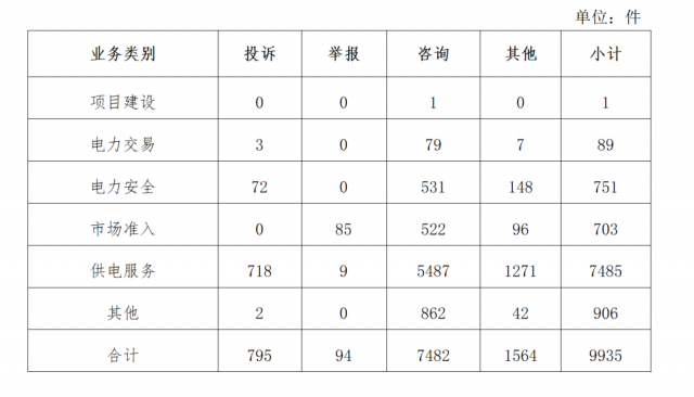 2022年9月共收到投訴舉報(bào)事項(xiàng)940件,根據(jù)國(guó)家有關(guān)法律法規(guī)規(guī)定,國(guó)家能源局派出機(jī)構(gòu)對(duì)屬于監(jiān)管職責(zé)范圍的822件進(jìn)行了受理,占投訴舉報(bào)量的87.45%;其他不屬于能源監(jiān)管職責(zé)范圍的,已按照有關(guān)規(guī)定進(jìn)行了及時(shí)轉(zhuǎn)辦,并將相關(guān)情況及時(shí)告知了當(dāng)事人。