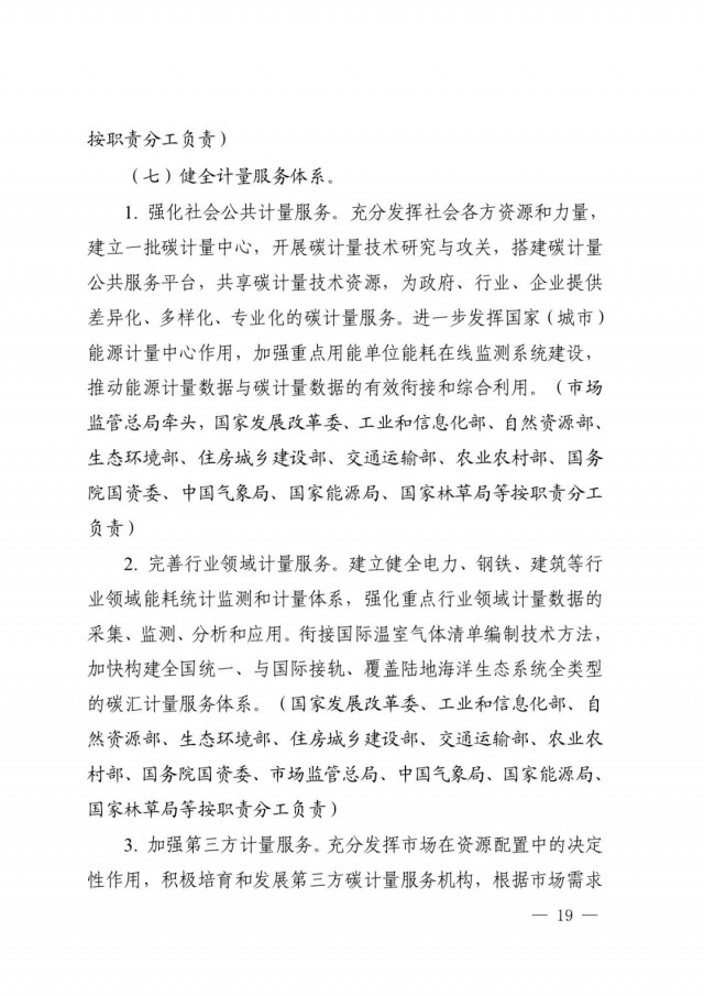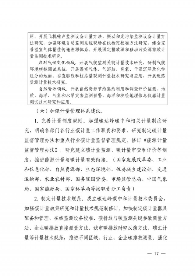 作為碳達(dá)峰碳中和“1+N”政策體系中重要文件之一,提出了完善碳排放基礎(chǔ)通用標(biāo)準(zhǔn)體系、加強(qiáng)重點(diǎn)領(lǐng)域碳減排標(biāo)準(zhǔn)體系建設(shè)、加快布局碳清除標(biāo)準(zhǔn)體系、健全市場化機(jī)制標(biāo)準(zhǔn)體系、完善計(jì)量技術(shù)體系、加強(qiáng)計(jì)量管理體系建設(shè)、健全計(jì)量服務(wù)體系7個(gè)方面的24項(xiàng)重點(diǎn)任務(wù),明確了實(shí)施碳計(jì)量科技創(chuàng)新工程、碳計(jì)量基礎(chǔ)能力提升工程、碳計(jì)量標(biāo)桿引領(lǐng)工程、碳計(jì)量精準(zhǔn)服務(wù)工程、碳計(jì)量國際交流合作工程5項(xiàng)重點(diǎn)工程,開展雙碳標(biāo)準(zhǔn)強(qiáng)基行動(dòng)、百項(xiàng)節(jié)能降碳標(biāo)準(zhǔn)提升行動(dòng)、低碳前沿技術(shù)標(biāo)準(zhǔn)引領(lǐng)行動(dòng)、綠色低碳標(biāo)準(zhǔn)國際合作行動(dòng)4項(xiàng)重點(diǎn)行動(dòng),并對協(xié)調(diào)推動(dòng)各項(xiàng)工作落實(shí)提出相應(yīng)要求。