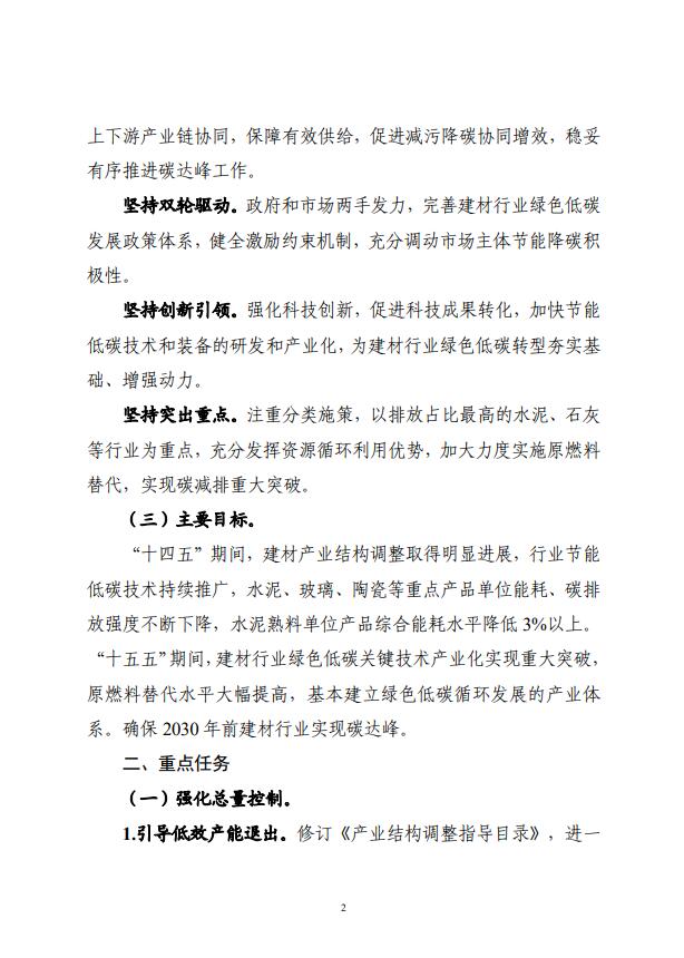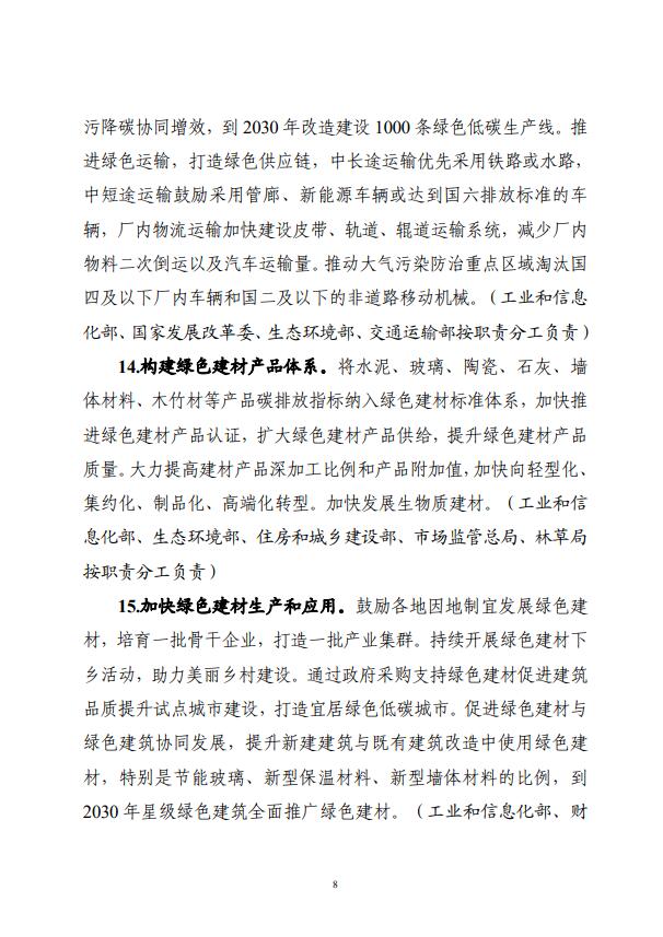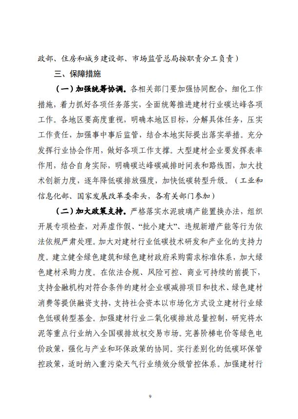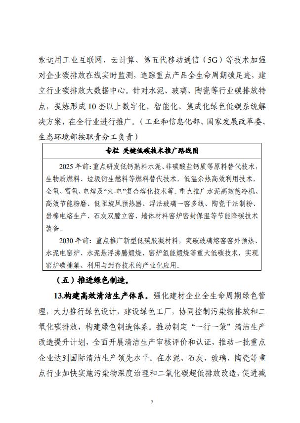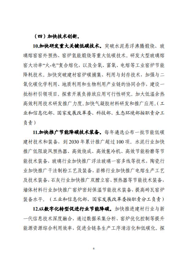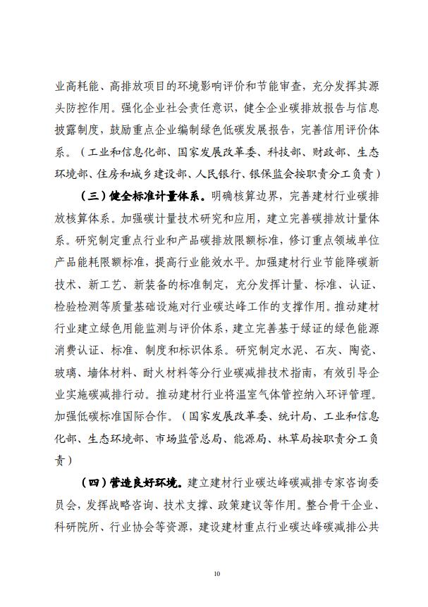 四部門關于印發(fā)建材行業(yè)碳達峰實施方案的通知