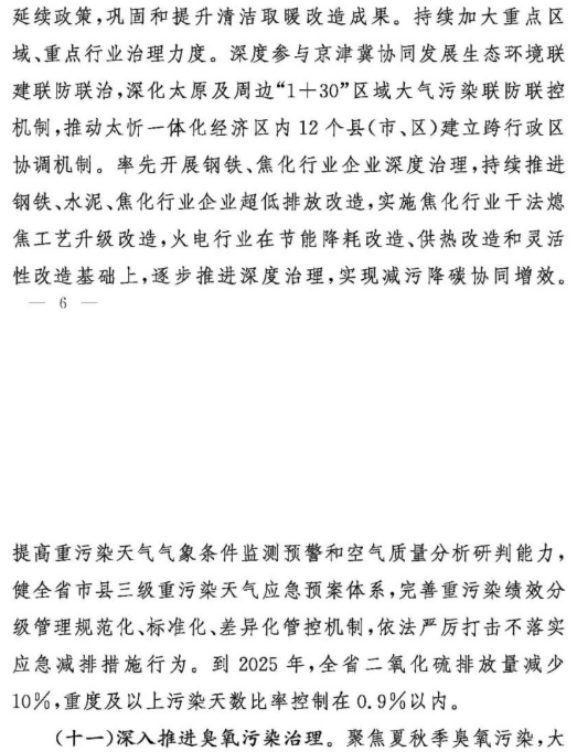 11月8日,山西政府網(wǎng)發(fā)布《關于深入打好污染防治攻堅戰(zhàn)的實施意見》。