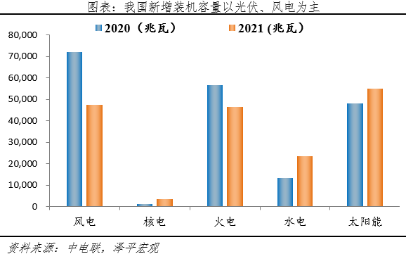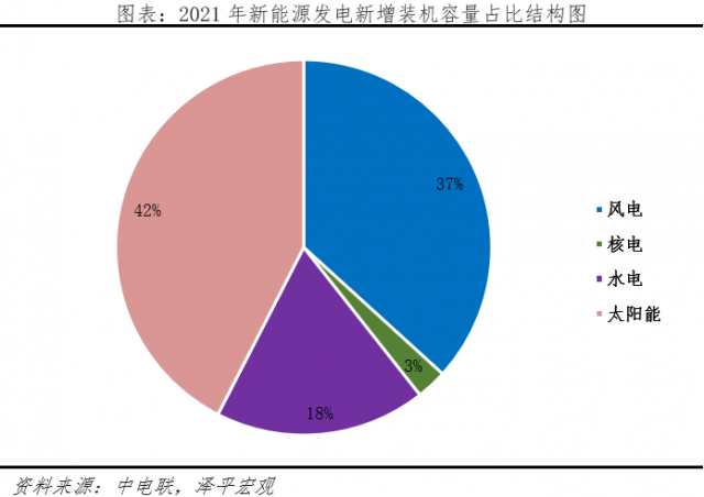 光伏是新能源發(fā)電端建設的核心領域之一,中電聯(lián)數(shù)據(jù)顯示,2021年我國太陽能新增裝機容量為54930兆瓦,同比增長14.0%,占新能源發(fā)電新增裝機總容量的42%。
