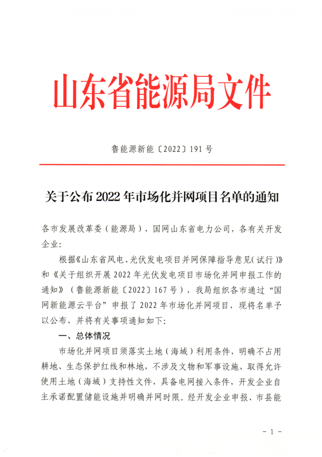 12月20日,山東省能源局公布2022年市場化并網(wǎng)光伏發(fā)電項目名單,共有54個項目入選,合計裝機7GW。具體名單如下: