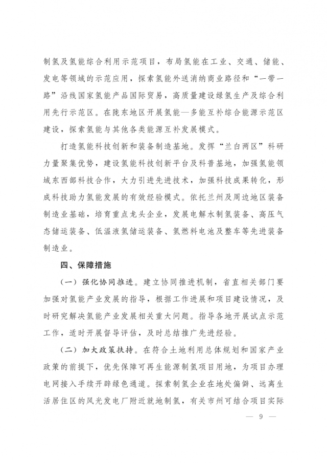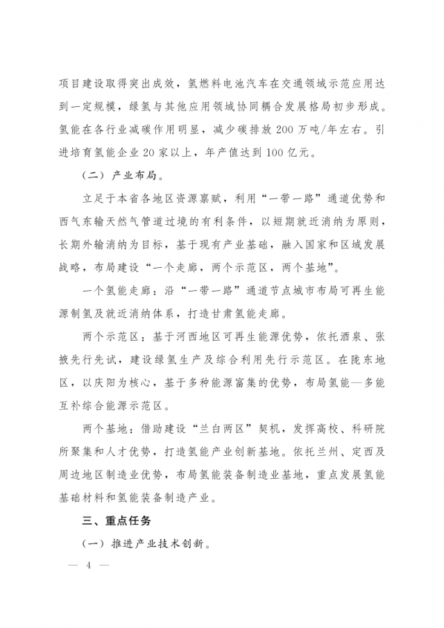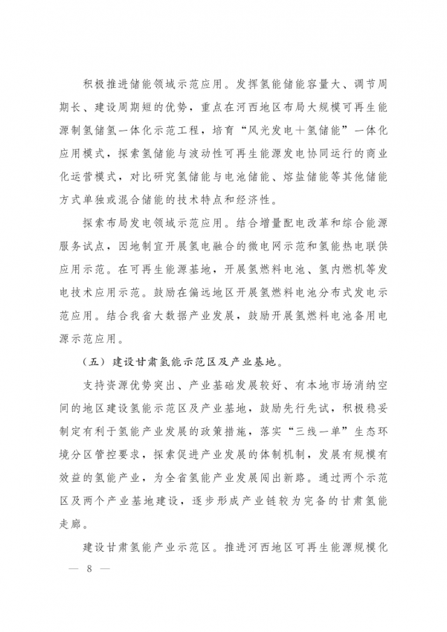1月3日,甘肅省人民政府辦公廳發(fā)布關(guān)于氫能產(chǎn)業(yè)發(fā)展的指導(dǎo)意見,意見指出,支持在高速公路服務(wù)區(qū)內(nèi)布局建設(shè) “分布式光伏+制氫、儲氫、加氫”一體化示范應(yīng)用。培育 “風(fēng)光發(fā)電+氫儲能”一體化應(yīng)用模式,探索氫儲能與波動(dòng)性可再生能源發(fā)電協(xié)同運(yùn)行的商業(yè)化運(yùn)營模式,對比研究氫儲能與電池儲能、熔鹽儲能等其他儲能方式單獨(dú)或混合儲能的技術(shù)特點(diǎn)和經(jīng)濟(jì)性。