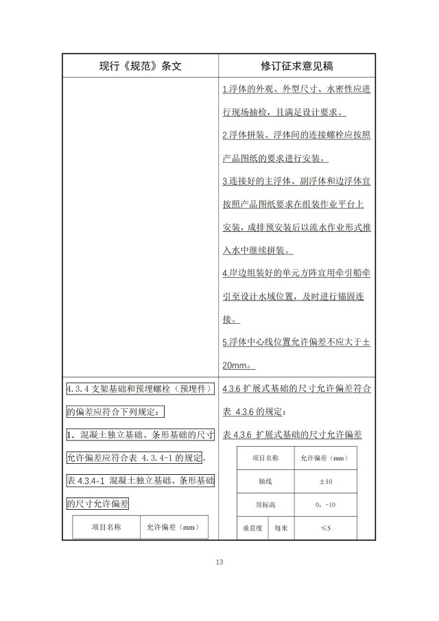 根據(jù)局部修訂條文對(duì)照表,新增水上光伏測(cè)繪、施工以及安全等一系列要求。例如,水上光伏發(fā)電站水下測(cè)繪工作應(yīng)完成,水下障礙物應(yīng)全部清理完畢。如施工場(chǎng)地有航道交叉,應(yīng)采取相應(yīng)安全保障措施。對(duì)于水面作業(yè)、作業(yè)面高度在2m及以上、作業(yè)面坡度大于30゜等特殊作業(yè)環(huán)境的項(xiàng)目,應(yīng)編制專項(xiàng)施工方案,采取相應(yīng)的安全防護(hù)措施。水上作業(yè)平臺(tái)應(yīng)符合下列要求:1.水上作業(yè)平臺(tái)的設(shè)置應(yīng)經(jīng)充分論證,并應(yīng)制定專項(xiàng)設(shè)置方案。2.水上作業(yè)平臺(tái)的防墜入安全防護(hù)措施應(yīng)按要求設(shè)置到位。
