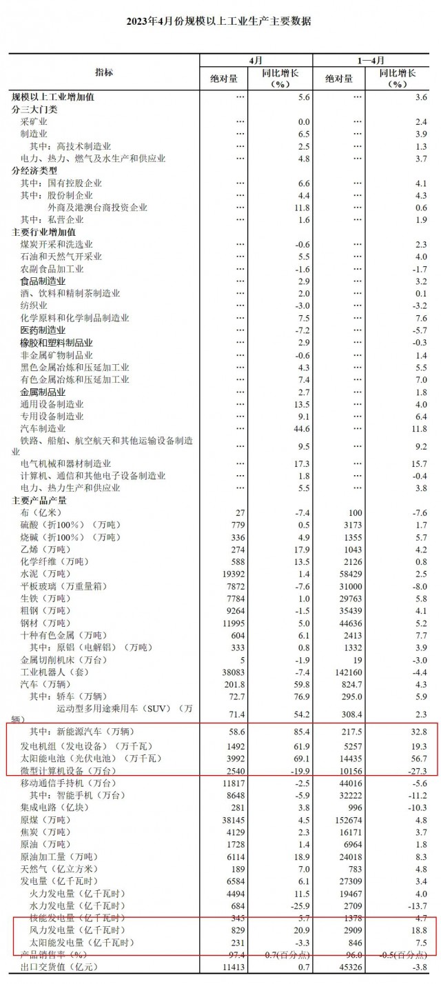5月16日,國(guó)家統(tǒng)計(jì)局發(fā)布了2023年4月份規(guī)模以上工業(yè)生產(chǎn)主要數(shù)據(jù)。