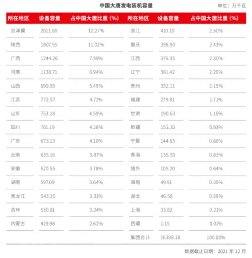 截至2021年底,大唐集團(tuán)發(fā)電總裝機(jī)16398.18萬千瓦,其中清潔能源占比39.1%;分布于全國32個省區(qū)市以及境外13個國家和地區(qū),占全國總裝機(jī)規(guī)模的7%。2020年、2021年大唐集團(tuán)的清潔能源裝機(jī)及發(fā)電量情況如下表所示。