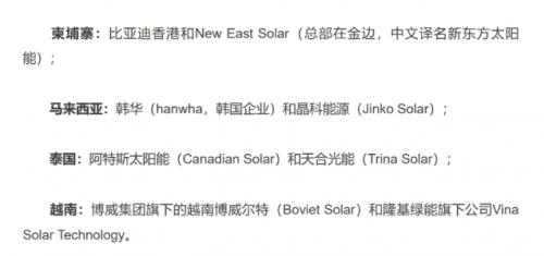 結果發(fā)現有5家公司試圖規(guī)避關稅,它們分別是:比亞迪、隆基綠能、阿特斯太陽能、天合光能和新東方太陽能,其業(yè)務部門都被認定違反了反傾銷和反補貼稅法律,必須支付高額關稅。而主要的組件供應商韓華、晶科、博維等沒有違反法律。