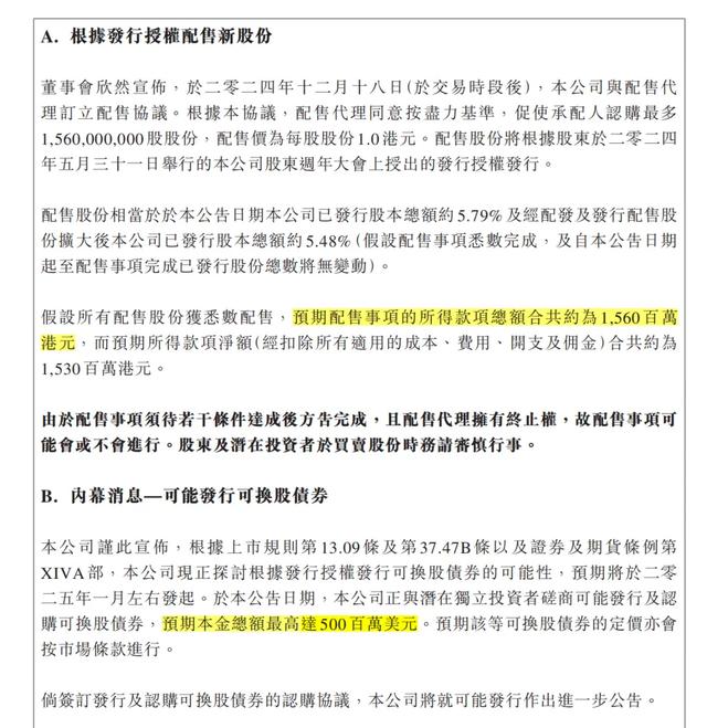 12月19日早間,協(xié)鑫科技通過港交所發(fā)布公告,公司完成15.6億股閃電配售,配售價(jià)每股1港元。同時(shí),公司將發(fā)行可轉(zhuǎn)債5億美元。