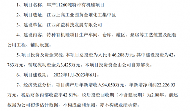 2021年10月27日,富祥藥業(yè)發(fā)布關于全資子公司投資建設年產(chǎn)11260噸特種有機硅項目的公告。