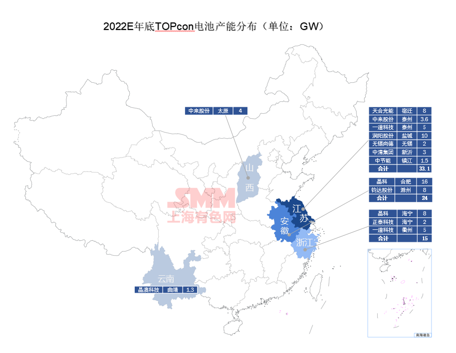 SMM整理了今明年的Topcon電池產(chǎn)能地域分布如下圖示: