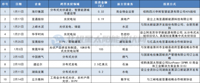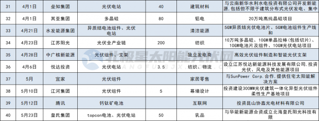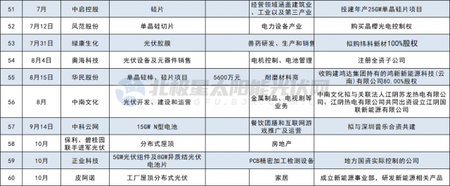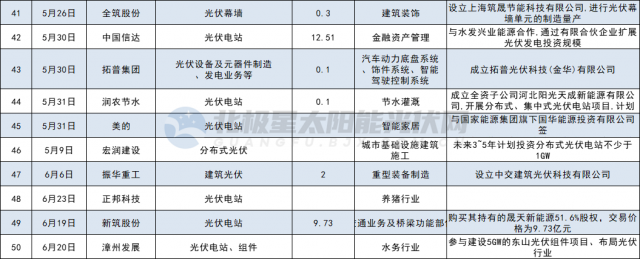 各家公司投資跨界方式不盡相同,有通過(guò)收購(gòu)、設(shè)立光伏公司,或是投資新建光伏項(xiàng)目,或是與其他企業(yè)共建新公司,進(jìn)入領(lǐng)域從多晶硅、硅片、電池組件、光伏膠膜輔材以及光伏電站等多個(gè)細(xì)分賽道。