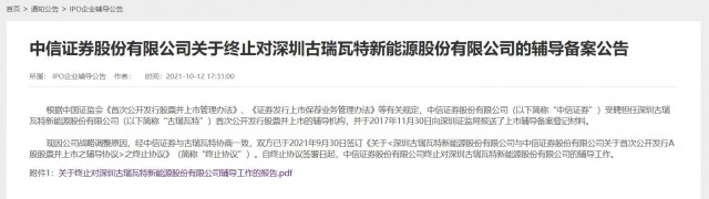 盡管沒有受到太多負面影響,但古瑞瓦特的IPO計劃一直沒能實現(xiàn)。直至2017年11月,古瑞瓦特報送上市輔導(dǎo)備案登記材料,輔導(dǎo)機構(gòu)為中信證券,其擬深交所IPO的計劃才浮出水面。