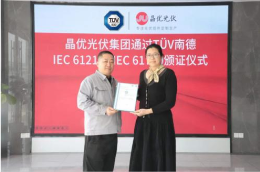 晶優(yōu)光伏集團(tuán)專注光伏組件定制生產(chǎn),致力于向客戶提供從高效光伏組件產(chǎn)品定制化到生產(chǎn)服務(wù)。TÜV南德針對晶優(yōu)光伏集團(tuán)的單玻和雙玻182/210光伏組件做了IEC 61215、IEC 61730全序列測試,整個(gè)測試周期該182、210光伏組件表現(xiàn)良好,最終通過TÜV南德檢測并收獲TÜV南德認(rèn)證證書。TÜV南德認(rèn)證證書的收獲是對晶優(yōu)光伏集團(tuán)該款光伏產(chǎn)品設(shè)計(jì)和工廠質(zhì)量保證的雙重認(rèn)可,有力證明了其產(chǎn)品的穩(wěn)定性及可靠性,確保為全球客戶交付高質(zhì)高效的光伏組件。