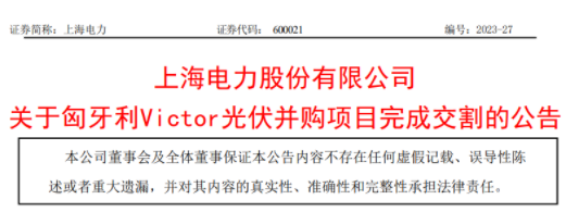 上海電力:匈牙利Victor光伏并購項目已完成交割