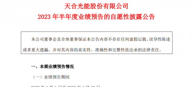 7月25日,天合光能發(fā)布2023年半年度業(yè)績(jī)預(yù)告,公司預(yù)計(jì)實(shí)現(xiàn)歸母凈利潤(rùn)33.28-37.52億元,同比增長(zhǎng)162.14%-195.61%;預(yù)計(jì)實(shí)現(xiàn)歸母扣非凈利潤(rùn)35.03-39.27億元,同比增長(zhǎng)204.40%-241.32%。