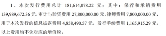 晶科科技發(fā)行費(fèi)用總額為1.82億元,其中,保薦和承銷費(fèi)用1.40億元。