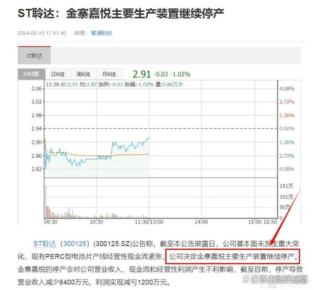 摘要:日前,一則關(guān)于“國(guó)內(nèi)新能源巨頭、上市企業(yè)-聆達(dá)股份旗下光伏大廠金寨嘉悅宣布繼續(xù)停產(chǎn)”的消息在互聯(lián)網(wǎng)平臺(tái)傳播,引發(fā)外界的廣泛關(guān)注。需要注意的是,在此之前,金寨嘉悅已處于停產(chǎn)狀態(tài)。