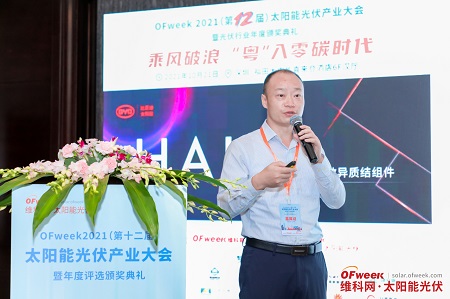 蘇州騰暉光伏技術(shù)有限公司研發(fā)總監(jiān)錢(qián)洪強(qiáng)先生,就基于異質(zhì)結(jié)電池方面的問(wèn)題,發(fā)表了主題為《雙碳目標(biāo)下光伏技術(shù)發(fā)展的趨勢(shì)討論》的精彩演講。
