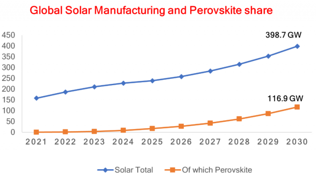 鈣鈦礦在過去十年中作為一種新型的高效太陽能電池材料脫穎而出,其功率轉(zhuǎn)換效率達(dá)到了25.7%。(1,2) 鈣鈦礦光活性材料具有固有的優(yōu)勢,可實(shí)現(xiàn)高功率轉(zhuǎn)換效率,例如長載流子擴(kuò)散長度、高載流子遷移率、低激子結(jié)合能、高吸收系數(shù)和通過交換前體組分的帶隙可調(diào)性。(3,4) 這些材料的另一個(gè)重要優(yōu)點(diǎn)是可以在低溫下通過溶液方法來沉積薄膜,它可以通過高通量的卷對卷工藝在柔性聚合物基材上進(jìn)行經(jīng)濟(jì)高效的生產(chǎn)。(5) 預(yù)計(jì)到2030 年,鈣鈦礦太陽能技術(shù)將超過全球光伏市場的29%。(6)
