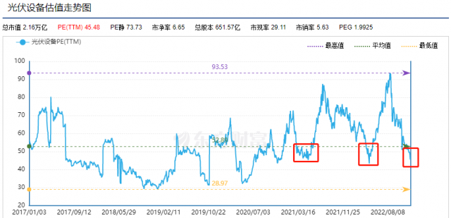 自8月18日高點以來,光伏板塊已經(jīng)連續(xù)4個月下跌,中證光伏產(chǎn)業(yè)指數(shù)(CSI:931151)最高跌幅達到27.91%。截至12月15日收盤,光伏板塊的滾動市盈率均值為45.48倍,已經(jīng)低于今年4月27日48.75倍的估值水平(數(shù)據(jù)來源:Choice)。
