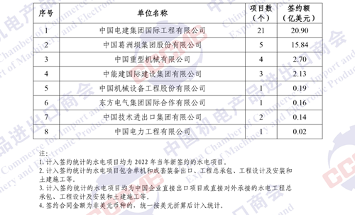 2022年中國企業(yè)境外水電項(xiàng)目簽約額排名