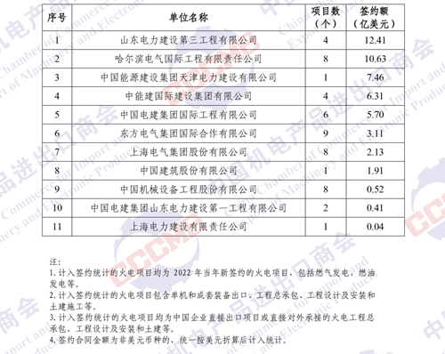 2022年中國企業(yè)境外火電項(xiàng)目簽約額排名