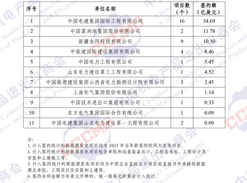2022年中國企業(yè)境外風(fēng)電項(xiàng)目簽約額排名