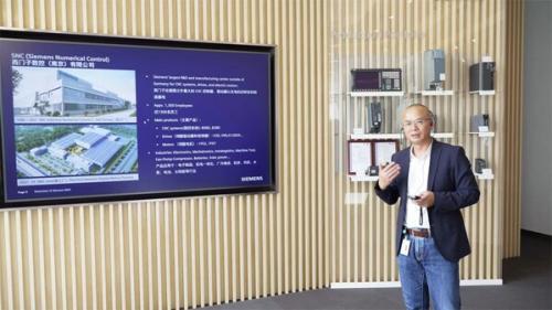 西門子數控(南京)有限公司總經理周郁榮在2023西門子中國零碳先鋒媒體行首站為記者講解