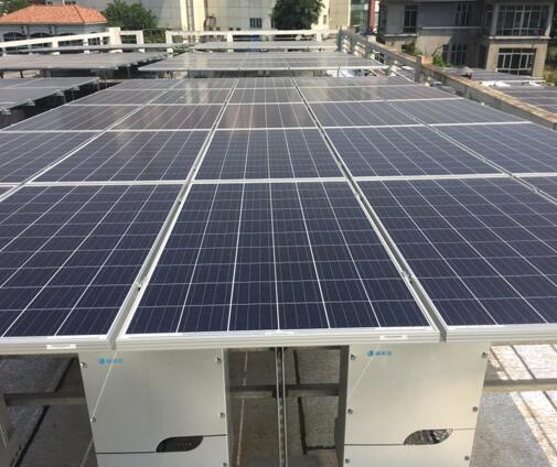 并網(wǎng)點(diǎn)就近380V接入電網(wǎng)。因屋頂周圍無(wú)承重墻,考慮逆變器的防護(hù),通風(fēng)及接線方便,最終確定逆變器掛在組件支架上的方案。