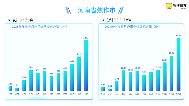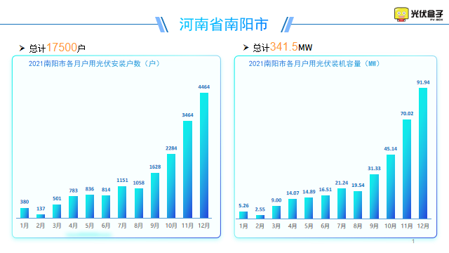 2021年河南省戶用光伏安裝了15.41萬戶,12月份安裝戶數(shù)占全年的22.66%。