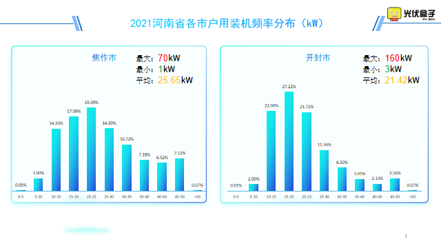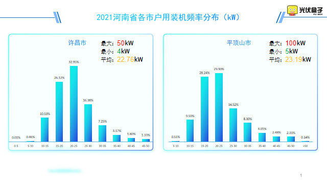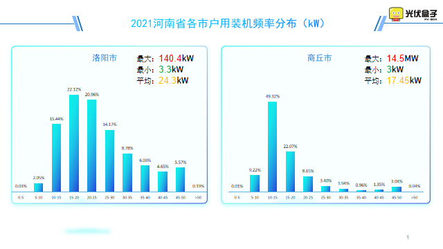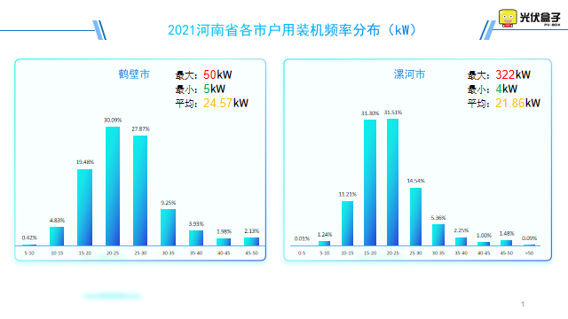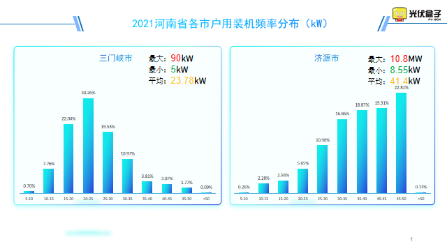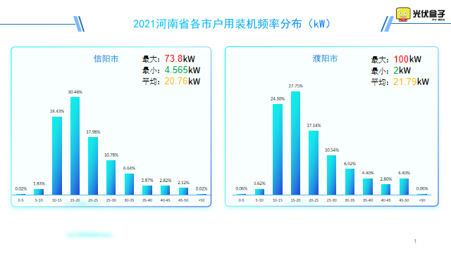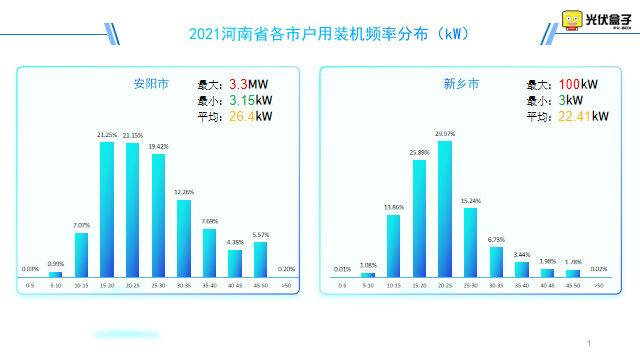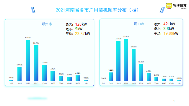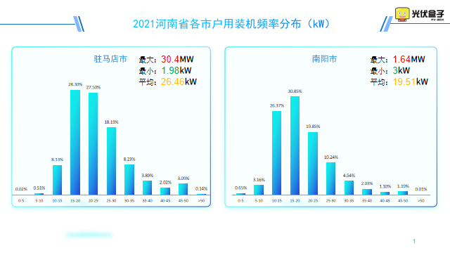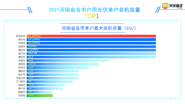 以下是2021年河南省戶用裝機頻率分布圖,最大單戶裝機在駐馬店市,為30.4MW。