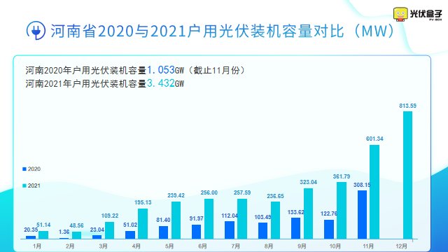 2021年河南戶用光伏安裝3.43GW,12月就安裝了0.81GW。