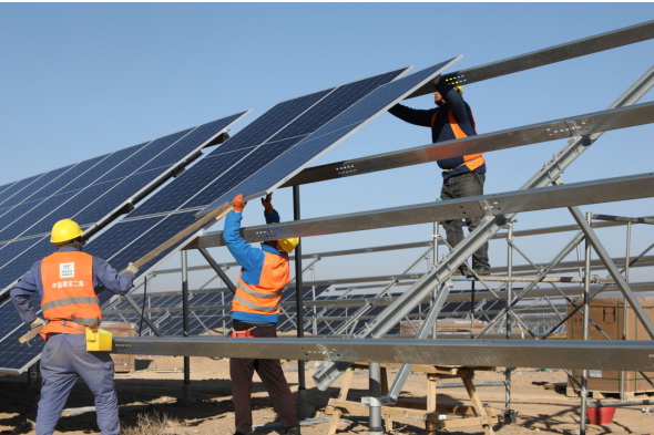 一望無垠的荒漠戈壁里,光伏藍海在陽光下熠熠生輝,與光熱儲能板塊、風電板塊遙相呼應,“建”證著建設者在“沙戈荒”上追“光”逐“日”。中建二局將始終聚焦國家發(fā)展戰(zhàn)略,以實際行動為綠色中國貢獻更多力量。(麻倩、劉慶安)