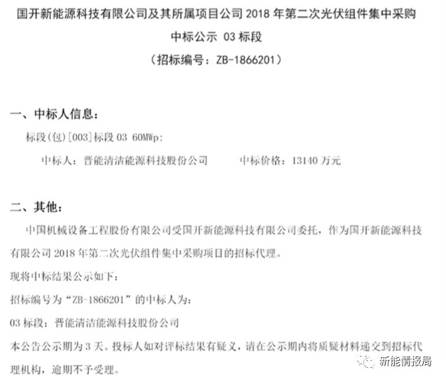 7月28日,國(guó)開(kāi)新能源科技有限公司及其所屬項(xiàng)目公司發(fā)布2018年第二次光伏組件集中采購(gòu)中標(biāo)公示。