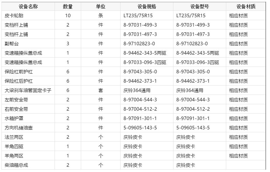 采購(gòu)設(shè)備詳情: