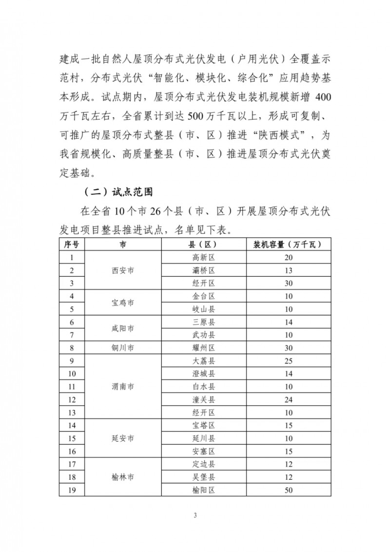 9月27日,陜西省發(fā)改委印發(fā)《陜西省整縣(市、區(qū))推進(jìn)屋頂分布式光伏發(fā)電試點(diǎn)工作方案的通知》。