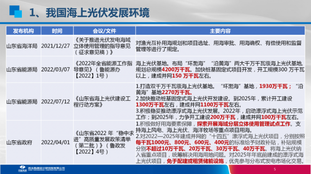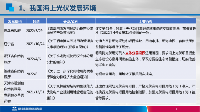 我國海上光伏項目開發(fā)政策情況