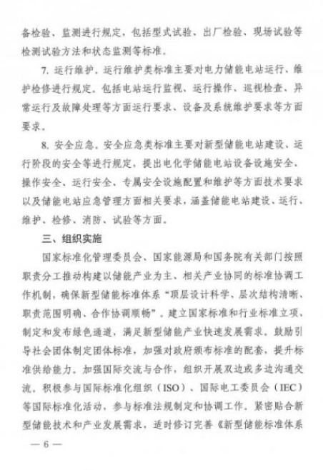 到2025年,在電化學(xué)儲(chǔ)能、壓縮空氣儲(chǔ)能、可逆燃料電池儲(chǔ)能、超級(jí)電容儲(chǔ)能、飛輪儲(chǔ)能、超導(dǎo)儲(chǔ)能等領(lǐng)域形成較為完善的系列標(biāo)準(zhǔn);加強(qiáng)與國內(nèi)外標(biāo)準(zhǔn)化組織技術(shù)交流,著力打破產(chǎn)業(yè)發(fā)展瓶頸,規(guī)范引導(dǎo)產(chǎn)業(yè)高質(zhì)量發(fā)展,保障儲(chǔ)能電站安全;加大國際標(biāo)準(zhǔn)化力度,深度參與國際電工委員會(huì)(IEC)國際標(biāo)準(zhǔn)化工作,支撐標(biāo)準(zhǔn)走出去。逐步構(gòu)建適應(yīng)技術(shù)創(chuàng)新趨勢(shì)、滿足產(chǎn)業(yè)發(fā)展需求、對(duì)標(biāo)國際先進(jìn)水平的新型儲(chǔ)能標(biāo)準(zhǔn)體系。