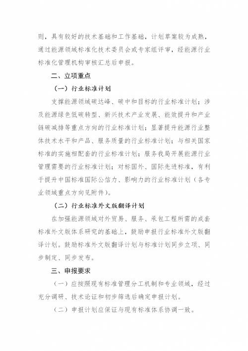 《2023年能源行業(yè)標(biāo)準(zhǔn)計(jì)劃立項(xiàng)指南》