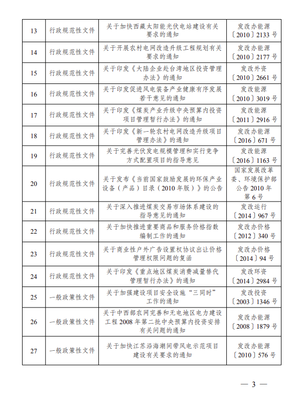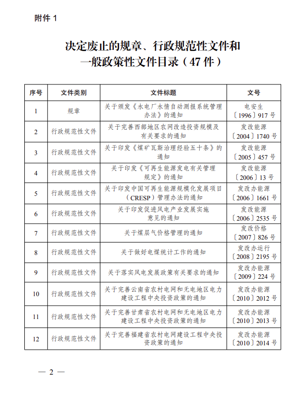 經(jīng)過清理,決定對(duì)47件規(guī)章、行政規(guī)范性和一般政策性文件予以廢止,其中包括《關(guān)于完善光伏發(fā)電規(guī)模管理和實(shí)行競(jìng)爭(zhēng)方式配置項(xiàng)目的指導(dǎo)意見》等多項(xiàng)跟光伏、風(fēng)電能源領(lǐng)域有關(guān)文件。