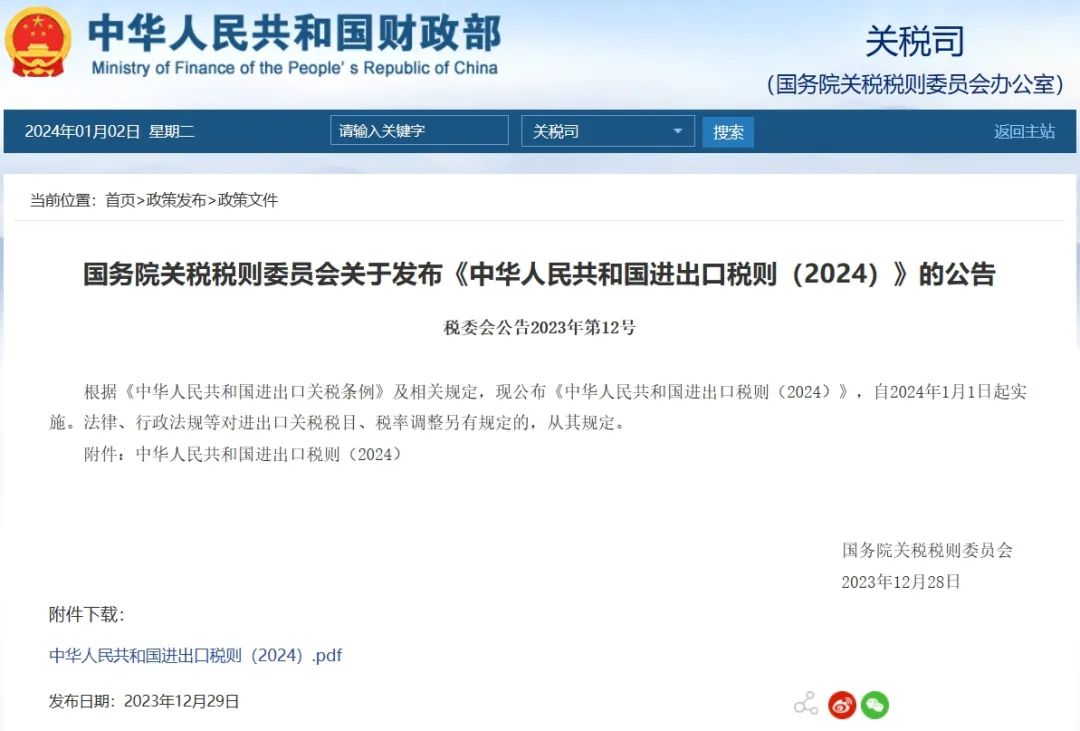 2023年12月29日,國務(wù)院關(guān)稅稅則委員會公布《中華人民共和國進出口稅則(2024)》,自2024年1月1日起實施。相對于之前發(fā)布的公告,本次公布了進出口產(chǎn)品具體的稅則,其中包含煤炭。
