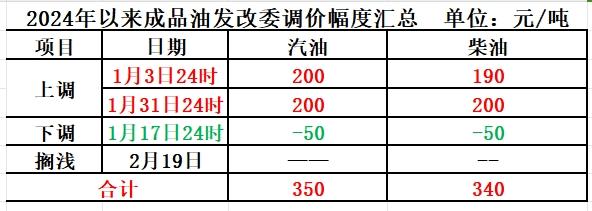 今年以來(lái),國(guó)內(nèi)成品油零售限價(jià)已經(jīng)歷四輪調(diào)整,分別為“兩漲一跌一擱淺”。漲跌互抵后,國(guó)內(nèi)汽、柴油價(jià)格每噸較去年底分別提高350元、340元。若本輪成品油調(diào)價(jià)政策落地,將是2024年的第三次上漲,今年以來(lái)成品油調(diào)價(jià)也將呈現(xiàn)“三漲一跌一擱淺”的格局。