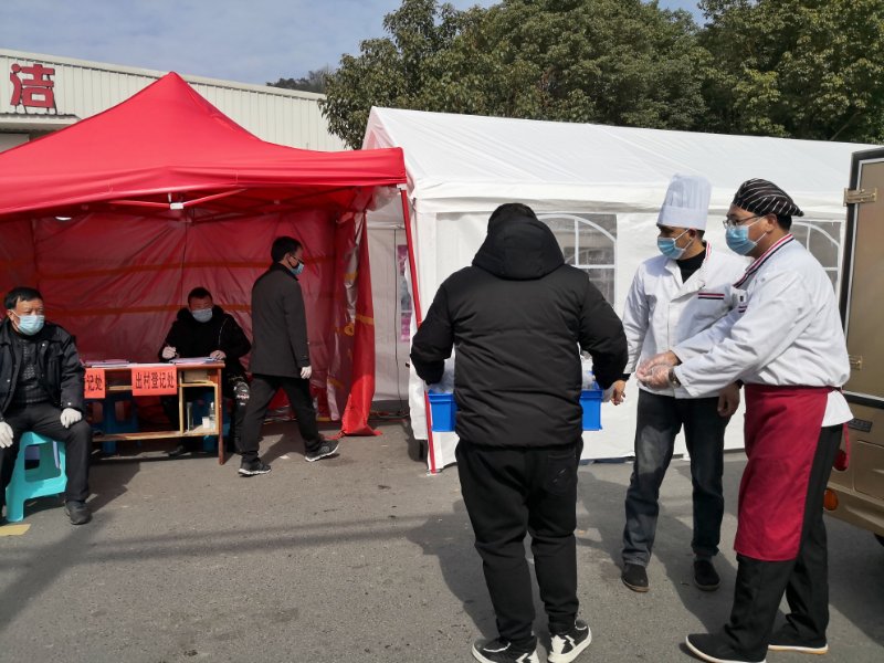 “你守護居民,我守護你。”疫情當前,浙江省臺州市前所街道關卡防控檢查志愿者,堅守在防疫第一線,夜以繼日地協助小區(qū)進行封閉管理。因為附近餐館停業(yè),考慮到防疫一線工作人員的用餐問題,浙江火電特意組織了這次愛心送餐活動,為防疫一線的志愿者,送去可口的飯菜。