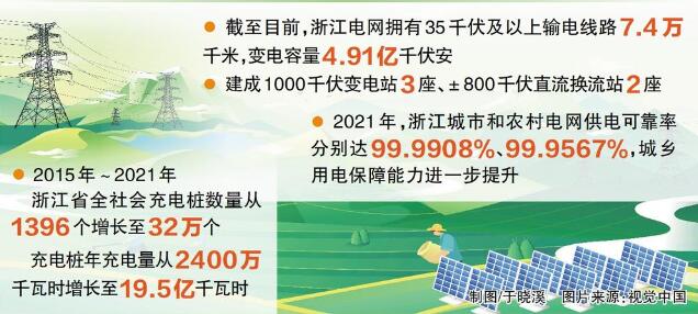 黨的十八大以來,習(xí)近平總書記多次來到浙江。“干在實(shí)處、走在前列、勇立潮頭”“努力成為新時(shí)代全面展示中國(guó)特色社會(huì)主義制度優(yōu)越性的重要窗口”……習(xí)近平總書記一系列重要指示,為浙江發(fā)展指明前進(jìn)方向、提供根本遵循、注入強(qiáng)大動(dòng)力。牢記總書記的殷切囑托,國(guó)網(wǎng)浙江省電力有限公司砥礪前行,在構(gòu)建新型電力系統(tǒng)、服務(wù)建設(shè)國(guó)家共同富裕示范區(qū)中奮勇探索,助力浙江綠色低碳轉(zhuǎn)型、智慧治理、城鄉(xiāng)共富。