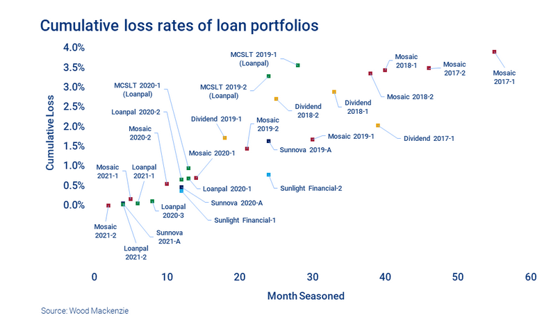 金融家繼續(xù)報告各種租賃、購電協(xié)議、貸款組合的低拖欠率和損失率。投資者現(xiàn)在可以獲得某些投資組合近五年的業(yè)績數(shù)據(jù)。而隨著時間的推移,有更好表現(xiàn)的供應(yīng)商應(yīng)該在未來的交易中獲得更低的資本成本。