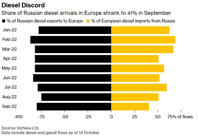柴油市場混亂——今年9月,銷往歐洲的俄羅斯柴油份額降至41%