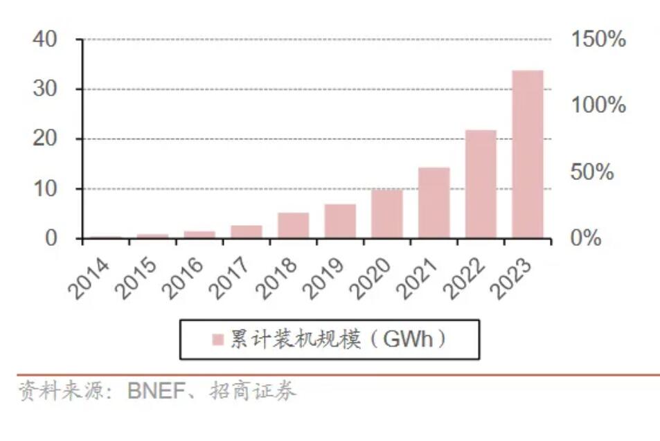 圖:2014-2023全球戶(hù)儲(chǔ)累計(jì)裝機(jī)規(guī)模(GWh)