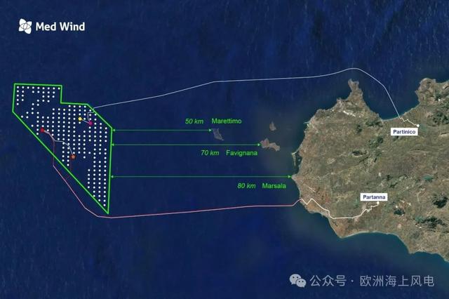 Med Wind項(xiàng)目位于地中海,西西里島海岸外約80公里處,規(guī)劃裝機(jī)容量2.8GW,是一個(gè)全漂浮式海上風(fēng)電場(chǎng),計(jì)劃采用明陽(yáng)智能18MW風(fēng)機(jī)(MySE 18-292)。